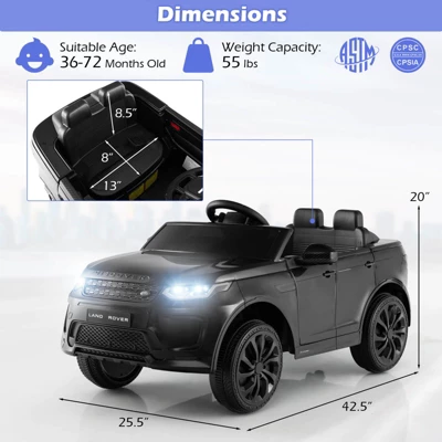- Officially Licensed Land Rover: Our kids ride on car features bright headlights, a cool windshield, LED tail lights, and rearview mirrors to mimic a real Land Rover. Plus, the two 390W motors and one 12V 4.5AH battery ensure an exciting speed range of 1.86-3.1 mph and 60-80 minutes of play time.