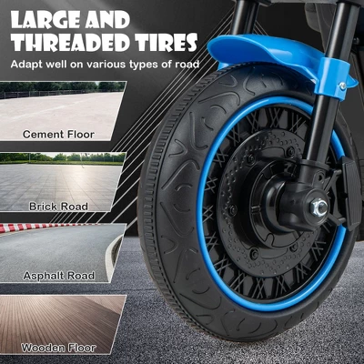 - Safe & Smooth Riding: Featuring a soft start function, the ride-on motorbike is secure enough for kids. Additionally, the large and threaded tires adapt well on various types of road, such as the cement floor, brick road, asphalt road and wooden floor. And 2 detachable training wheels keep balance to add security.