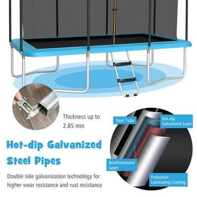 - Hot-Dip & Double-Side Galvanized Steel Frame: Giantex trampoline applies hot-dip galvanized steel pipes which are galvanized on both internal and external surfaces,providing excellent wear and rust resistance comparing to those ordinary steel pipes. The trampoline is also equipped with 4 U-shaped legs to ensure the stability while jumping.