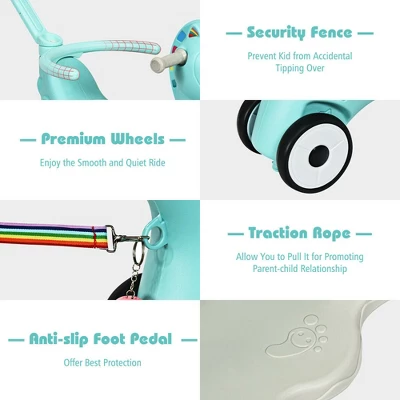 Costway Baby Rocking Horse 4 In 1 Kids Ride On Toy Push Car W/ Music Indoor Outdoor Gift