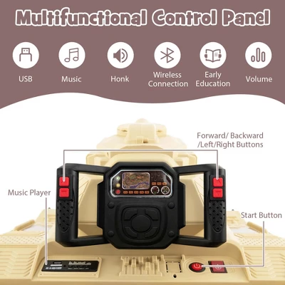 Multifunctional control panel contains music player, forward/ backward/left/right buttons and start button for kids to operate