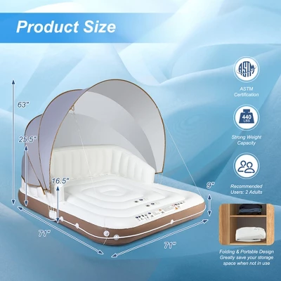- Widely Usage& 2 Cup Holders:With the dimension of 71” x 71” x 25.5”, our canopy island is suitable forseveral people having fun in beach, swimming pool, patio or just placing at living room as a spare bed. Featuring with 2 built-in cup holders at both sides, you can keep your drinks within easy reach.