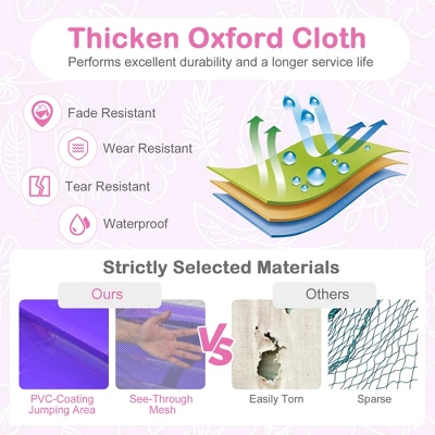 - Excellent Durability & Safety Use: The inflatable castle is made of selected oxford cloth with double stitching, and the water resistance as well as abrasion resistance are increased at the same time. Additionally, there are all-round mesh walls to ensure the safety of children while playing and good air permeability.