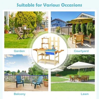 - Perfect Gift for Kids: This multifunctional outdoor play kitchen is an ideal childhood gift for children more than 3 years old. It gives toddlers infinite pleasure and learning desire. Parents can play with their children to improve good parent-child relationship.