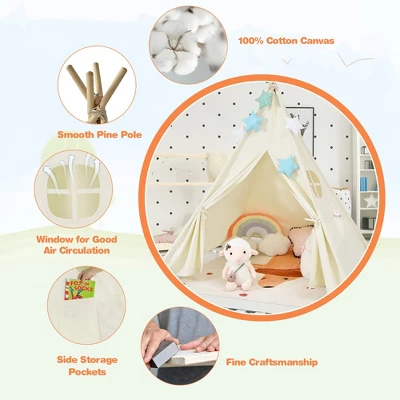 - Best Gift for Kids: The play tent is made of 100% natural and non-toxic cotton canvas which is super soft and comfortable. In addition, the tent is built with four sturdy pine wood poles that featuring great durability and free of chemical odors. This kids tent will be your child’s playhouse for many years.