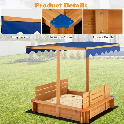 - Canopy Protection: This wooden sandbox is sheltered by a water-roof and sunlight proof canopy. It protects your little ones from the sun while keeping them cool in the shade. Made of tear-resistant PVC oxford fabric, this canopy can last for quite some time, making the sandbox an ideal outdoor kids’ furniture.