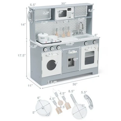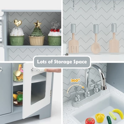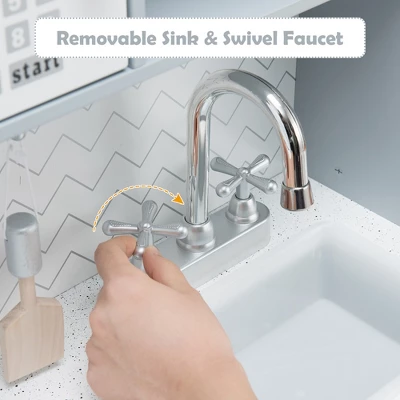 - The oven and water dispenser are built-in realistic light and sound for fun